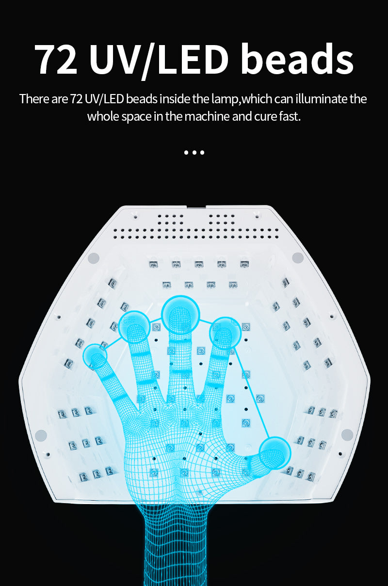 Featuring 72 UV/LED beads for even and quick drying, plus smart infrared sensor that activates automatically when you place your hand inside.